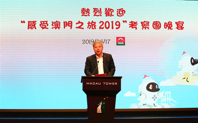 17日晚,由澳門旅遊局主辦的歡迎晚宴在旅遊塔三樓舉行。旅遊局局長文綺華、副局長程衛東、副局長許耀明,南光集團董事長傅建國、下屬澳門中旅董事長方立群出席活動晚宴。程衛東、傅建國分別上臺致辭。程衛東致辭表示,兩年一度的“感受澳門之旅”從2000年開辦至今已到第九屆,可以說考察團一直見證著澳門的成長。今年,更是中華人民共和國成立七十周年和澳門特別行政區成立二十周年的“雙慶之年”,希望這次的考察能讓大家親身感受,在國家各項重大的機遇下,澳門旅遊業已進入了新的發展臺階。傅建國致辭表示,“感受澳門之旅”活動已經成為澳門旅遊業的知名品牌,為內地同行所熟知,更是成為了推廣澳門、宣傳澳門,促進澳門與內地旅遊經濟合作發展的橋樑和紐帶。南光集團將繼續立足澳門,積極參與“一帶一路”、粵港澳大灣區建設和區域合作發展,助力澳門“一中心、一平臺”建設,繼續為加強澳門與內地經貿、旅遊聯繫作出貢獻。