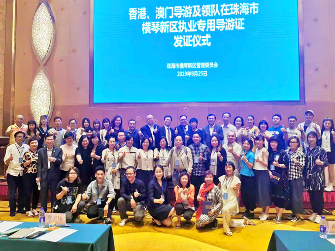 9月16日,广东省人力资源和社会保障厅、广东省文化和旅游厅联合印发《香港、澳门导游及领队在珠海市横琴新区执业实施方案(试行)》。符合条件的香港、澳门导游及领队,可申请参加珠海横琴旅游主管部门培训认证,取得横琴新区专用导游证后即可执业。澳门中旅张锡沛参加了第一批的培训并获得证书。