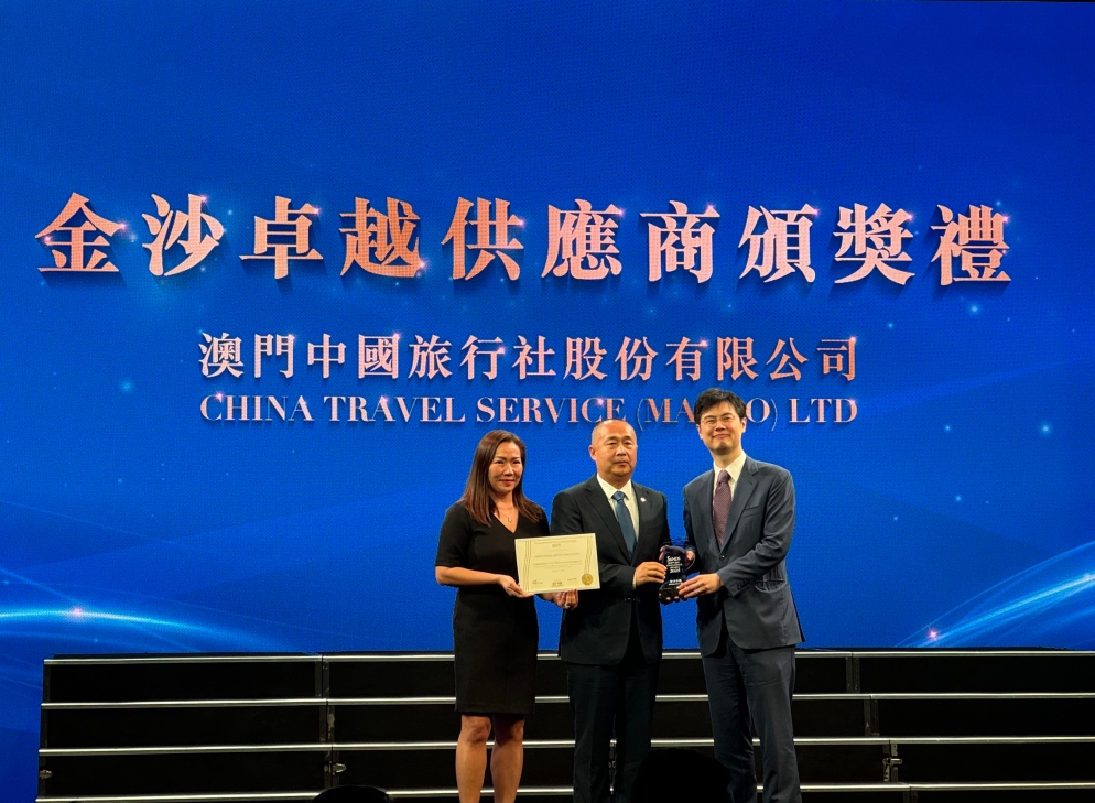 12 月 9 日,金沙中国 “金沙卓越供应商颁奖礼”在澳门伦敦人酒店举行,南光澳中旅客运中心凭借在可持续发展、服务品质优化及环保节能领域的突出表现,第三次荣获 “企业文化及可持续性” 奖项,彰显合作伙伴对客运中心二十载合作服务的高度认可。南光澳中旅总经理方立群、客运中心总经理陈文育受邀出席活动。