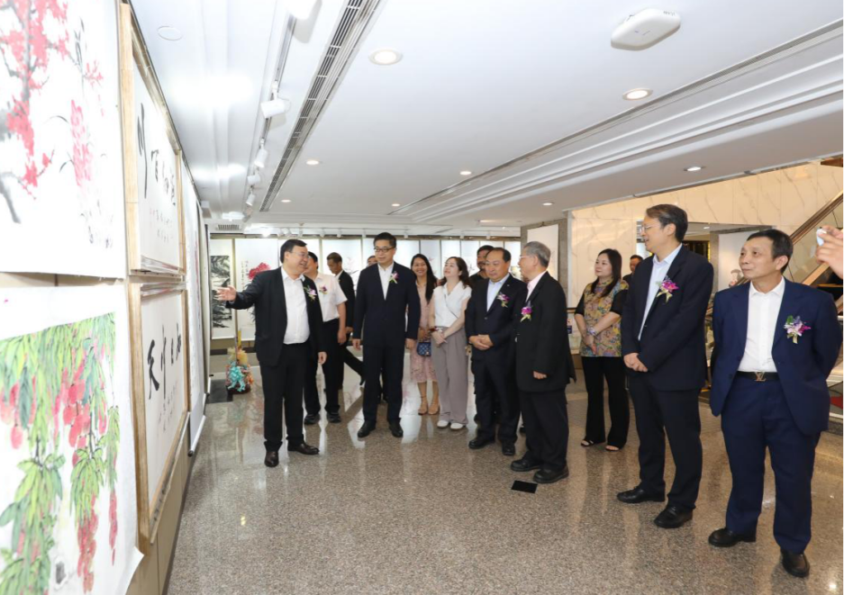 澳门中联办宣传文化部部长万速成,南光集团总经理姜维亮,南光集团董事、副总经理张沛然,澳门文化局视觉艺术发展处处长尹保伦,澳门教育及青年发展局教育资源中心主任苏智敏,澳门立法会议员、南光书画协会会长张健中,澳门书画艺术联谊会会长李秋平等领导嘉宾出席并主礼开幕仪式。