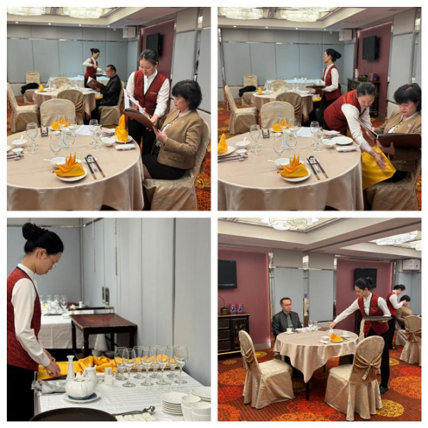 为迎接此次考核,酒店餐饮部成立专项辅导小组,通过一对一指导、模拟演练及情景复现等多种方式,协助两位同事系统梳理服务流程、强化专业知识、提升应变能力。