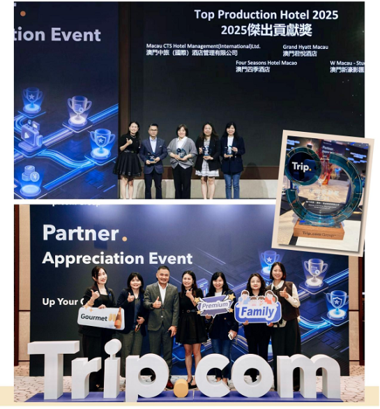 2月12日,携程(澳门)团队举办“2025年度合作伙伴答谢会”,南光澳中旅下属中酒公司应邀参会。会上,南光澳中旅下属中酒公司获颁“2025年度杰出贡献奖”,该奖项是对公司在合作稳定性、运营协同与市场适应能力方面的积极认可。