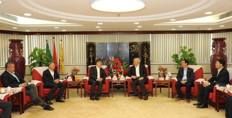 会见澳门航空股份有限公司董事会主席兼执行委员会主席吴立新、中国建筑工程(澳门)有限公司董事总经理沈程、中国太平保险(澳门)股份有限公司总经理王平一行